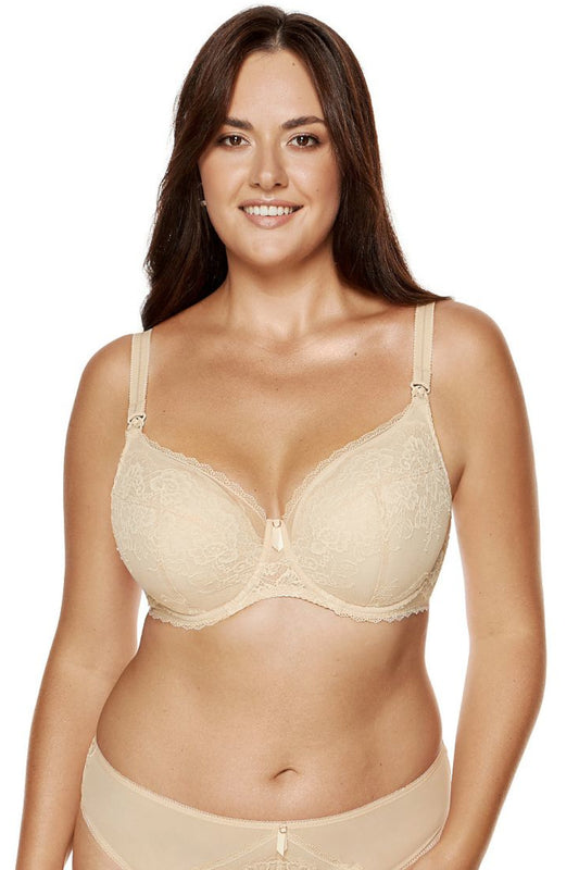 Verstärkter Spitzen BH zum Stillen Cup B-H 203354 - Beige