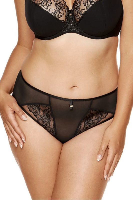 Eleganter Slip mit hoher Taille aus glattem Strick Netz und floraler Stickerei 198253 - Schwarz