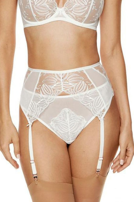 Cremefarbener Strumpfgürtel mit schimmernde Stickerei auf der Vorderseite 197768 - Ecru
