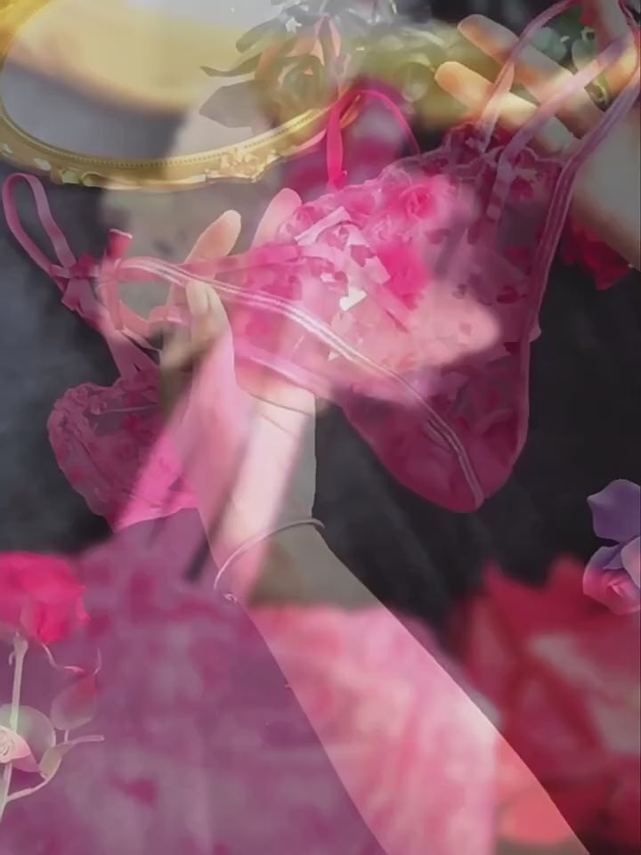 Bügel BH Set Bestickt transparent Soft Cup Damen Dessous String Unterwäsche Pink