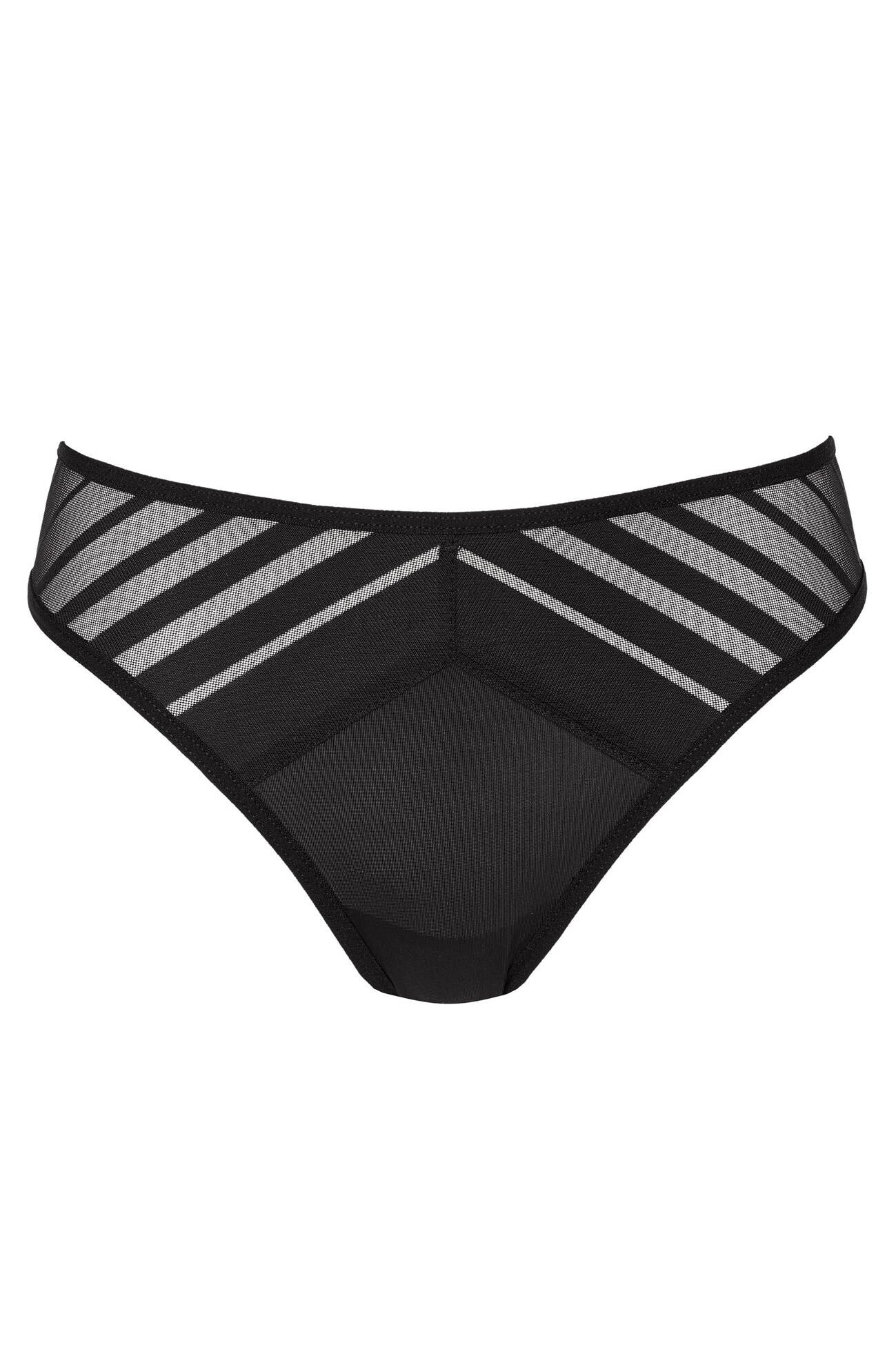 Verführerisches Höschen aus weichem Stoff in schwarzer Farbe, verziert mit originellem Muster. Baumwollzwickel für Tragekomfort und Bequemlichkeit.