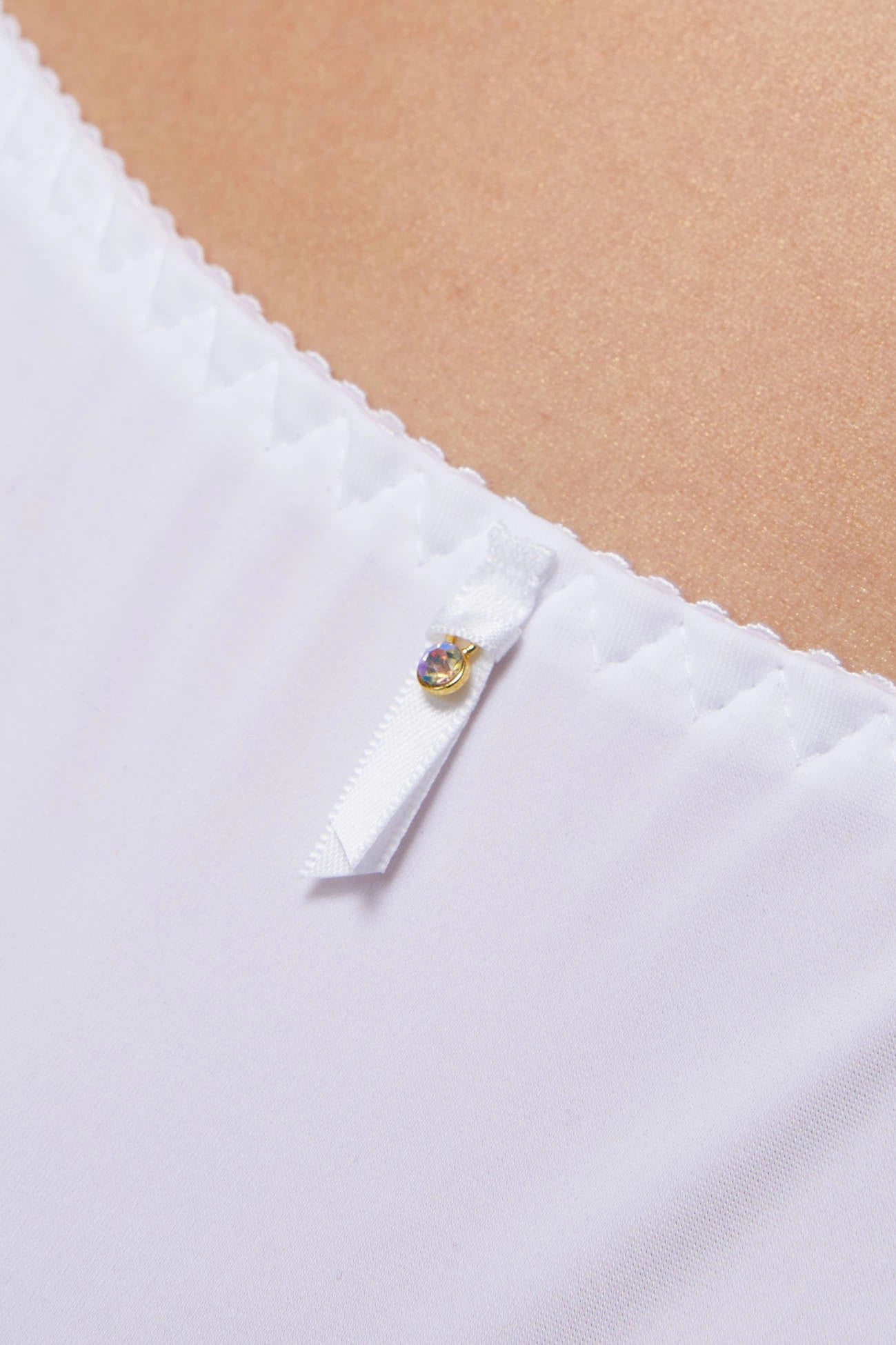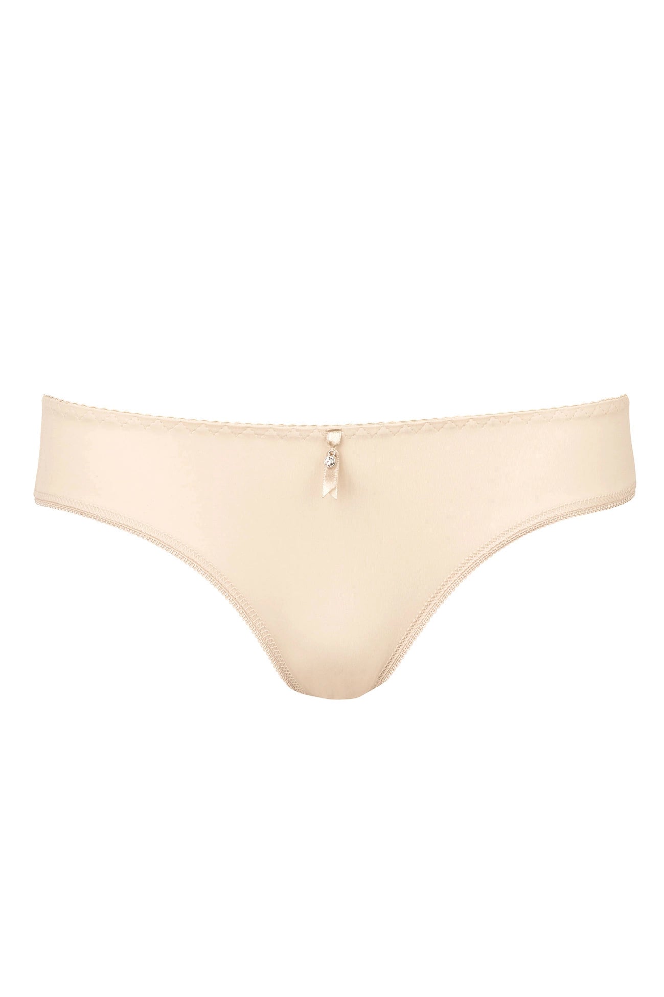 Klassisches Höschen aus glattem Strickstoff. Ein zartes Band mit einer Verzierung auf der Vorderseite verleiht der Unterwäsche Charme.