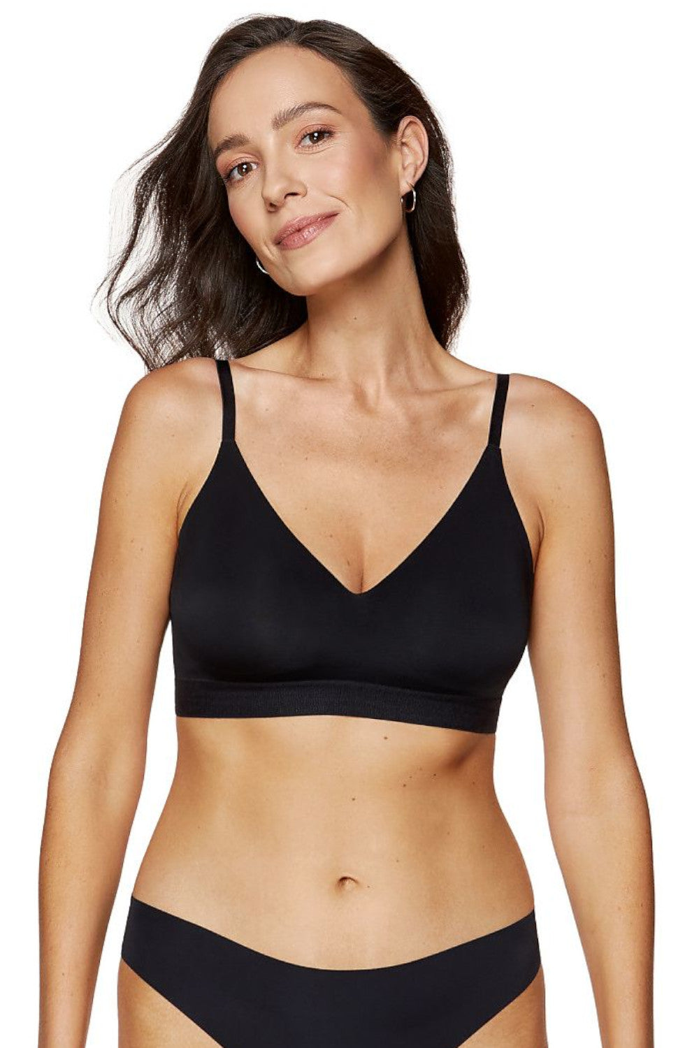 Bequemes, weiches Top mit herausnehmbaren Einsätzen. Ohne Drähte und minimale Nähte machen es unglaublich diskret und fast unsichtbar unter der Kleidung. Der Gummi unten verleiht einen sportlichen Stil und hält das Top an Ort und Stelle. Es hebt sanft die Brust an und sammelt sie, ideal für den täglichen Gebrauch und für wenig anspruchsvolle körperliche Aktivitäten. Keine kratzenden Etiketten. Hergestellt aus glattem Strick.