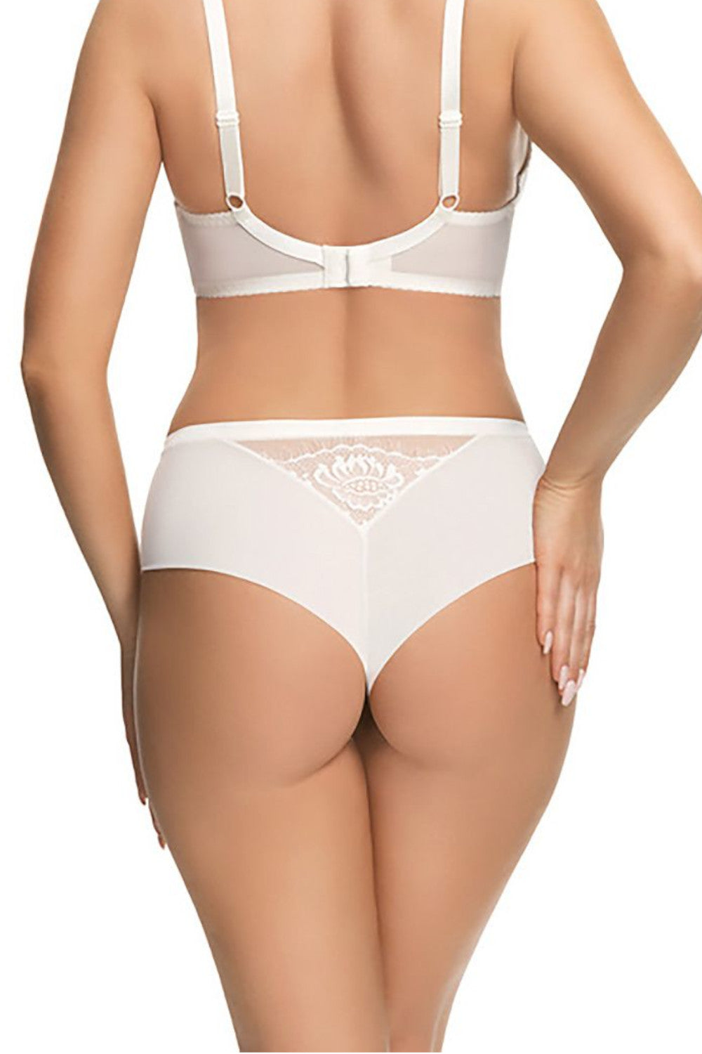 Sinnliche, sehr elegante Brasiliansche Höschen, die Ihnen sowohl einen schönen, femininen Look als auch vollen Komfort bieten. Die Vorderseite besteht aus einer Kombination aus zartem Tüll, Stretch-Strick und unglaublich schöner floraler Spitze, die die Vorderseite des Dessous in Form einer Verzierung schmückt. Der formschöne Rücken betont das Gesäß.
