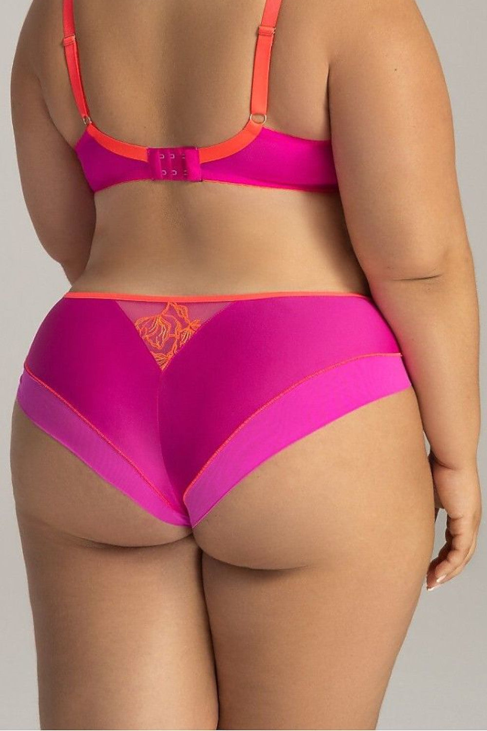 Sinnliche brasilianische Slips für Frauen, die Eleganz und Komfort schätzen. Das Modell enthüllt sanft die Pobacken und betont die weibliche Silhouette. Die Rückseite aus doppeltem Tüll mit dekorativem Finish wirkt besonders leicht und subtil. Die Slips sind mit feinem Spitzenbesatz und Netzverzierungen verziert, die dem Ganzen einen besonderen Charakter verleihen. Der flache Bund sorgt für perfekte Passform und Unsichtbarkeit unter der Kleidung. Im Inneren befindet sich eine Baumwolleinlage für Hygiene und Komfort. Verpackt in einer eleganten Schachtel, auch ideal als Geschenk.