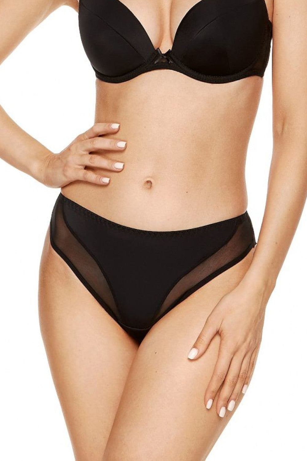 Klassisch geschnittener Tanga in Schwarz. Glatte, unauffällige Unterwäsche dank des doppelten elastischen Tüllrandes. Der Zwickel des Strings ist aus Baumwolle mit dem OEKO-TEX-Standard hergestellt, was ihn angenehm und sicher für den Intimbereich macht. Die Slips werden in Polen entworfen und genäht.
