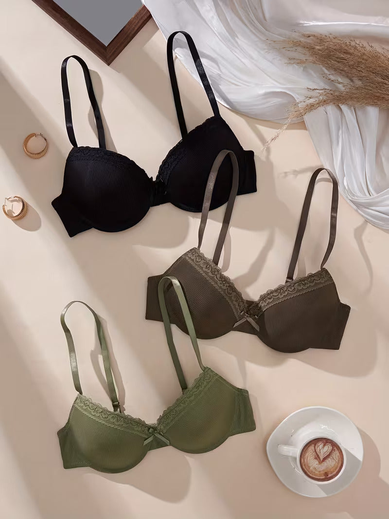 Süßes 3er Pack Damen Bügel Schalen Push Up BH Set Unterwäsche Dessous Cup A B C