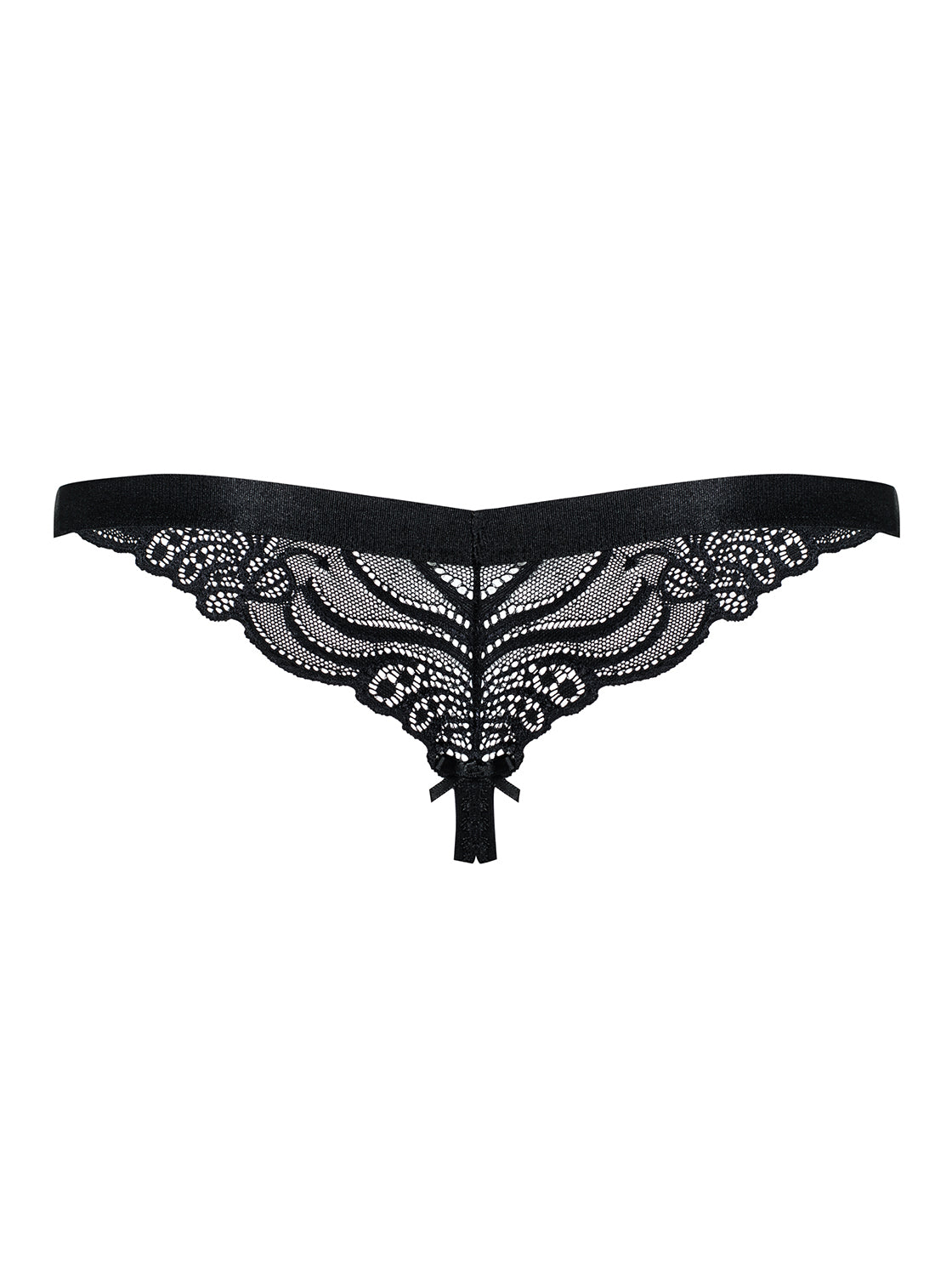 Verführerischer Spitzen-String mit schönen Motiven und elastischem Gummizug für tollen Tragekomfort. Mit offenem Schritt und süßer Schleife am Po. Elastisches und passgenaues Material.